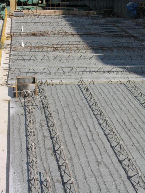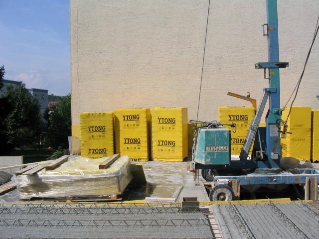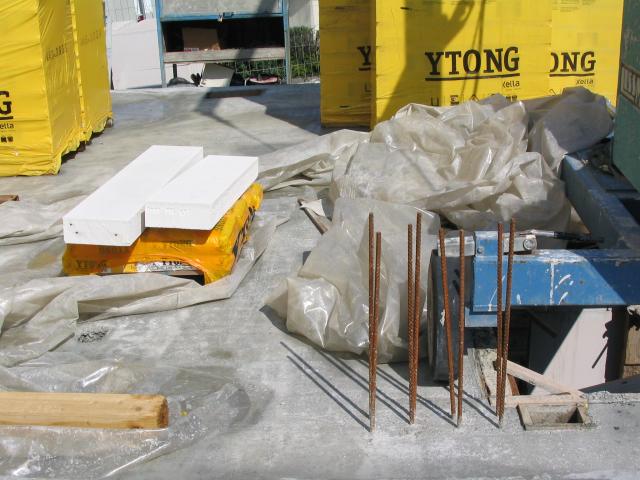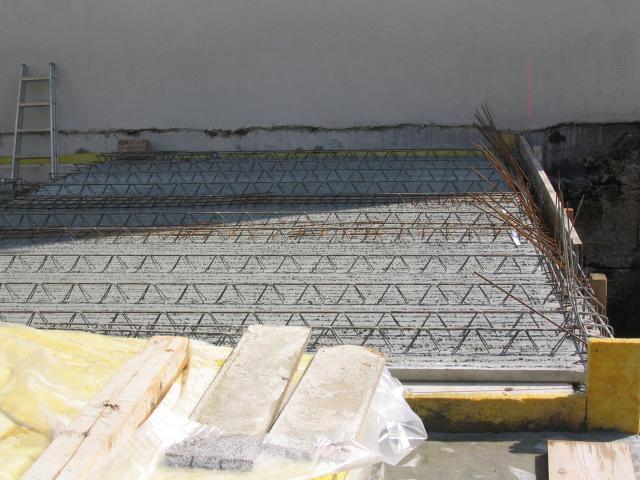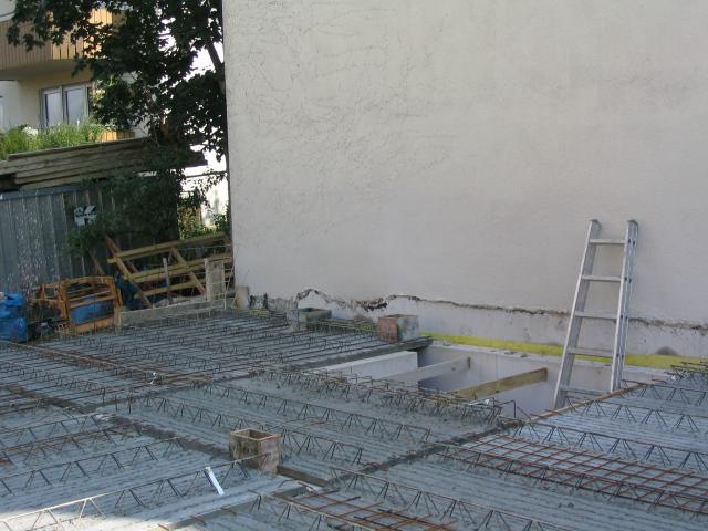 Die Kellerdecke war am 7.9.2003 fertig betoniert. Am Nachbarhaus war die Kellerdecke vorbereitet, aber noch nicht gegossen: