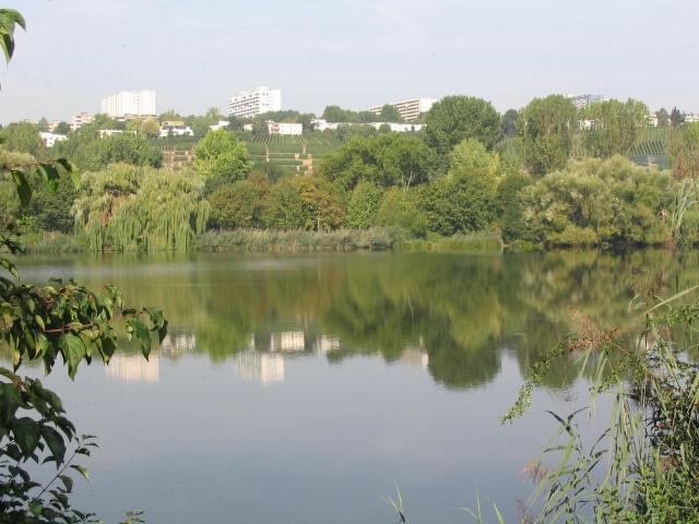 Mühlhausen rund um den Max-Eyth-See und die umliegenden Weinberge.